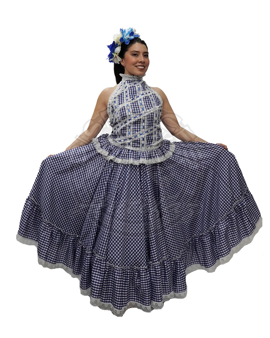 Traje de Cumbia Azul Mujer – Tradicional Cuadros Azules
